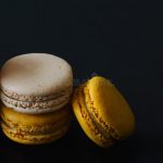 close-up-french-italian-macaron-black-isolate-background-web-design-banner-co...